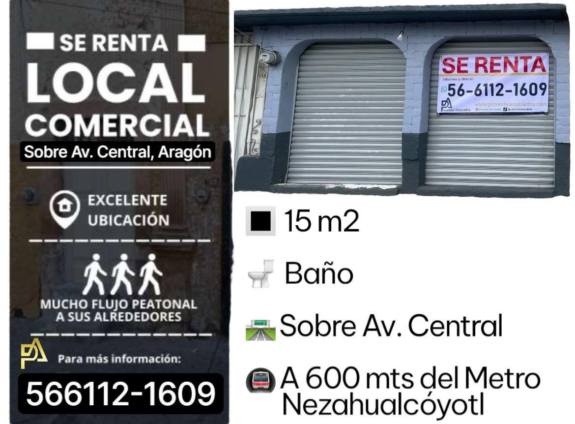 @pimentelasociados Se Renta Local Comercial 15 m2 📍Sobre Av. Central a 300 mts del Metro Nezahualcoyotl Renta Mensual $6,000 ℹ️ Información y citas www.pimentelasociados.com 56-6112-1609 #localenrenta #accesoria #rentalocal #bosquesdearagon